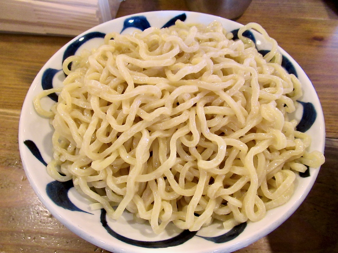 この写真だとどんぶりの大きさがわかりにくいですが、つけ汁の方の丼で普通のラーメン丼より少し小さいくらいかな!?って感じですので麺のお皿はとんでもなく大きいです(^_^)