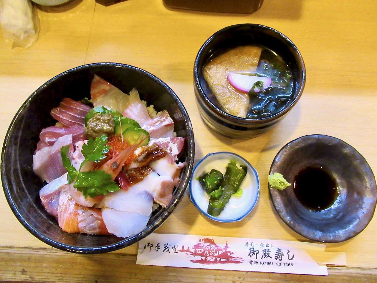 その海鮮丼にミニうどんかミニそばのどちらかを選べます。