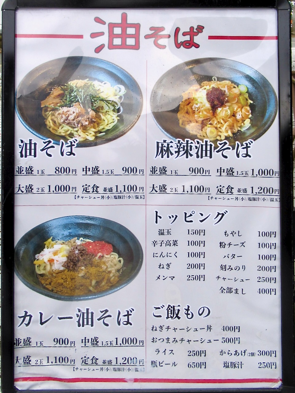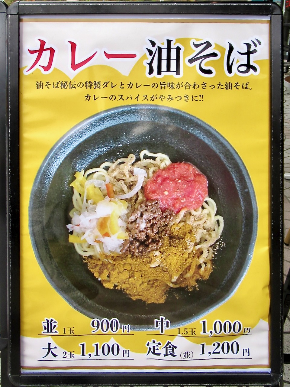これまでは「油そば」と「麻辣油そば」の2種類だったと思いますが、久しぶりにお邪魔してみると「カレー油そば」が増えてましたので迷うことなく入店・・・