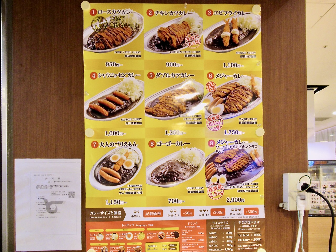 ちなみに「ワールドチャンピオンクラス」だと総重量はなんと2.5kgもあり、「メジャーカレー」でも中・大・特大の3種類から選択でき、大で総重量が1kgみたいですね。