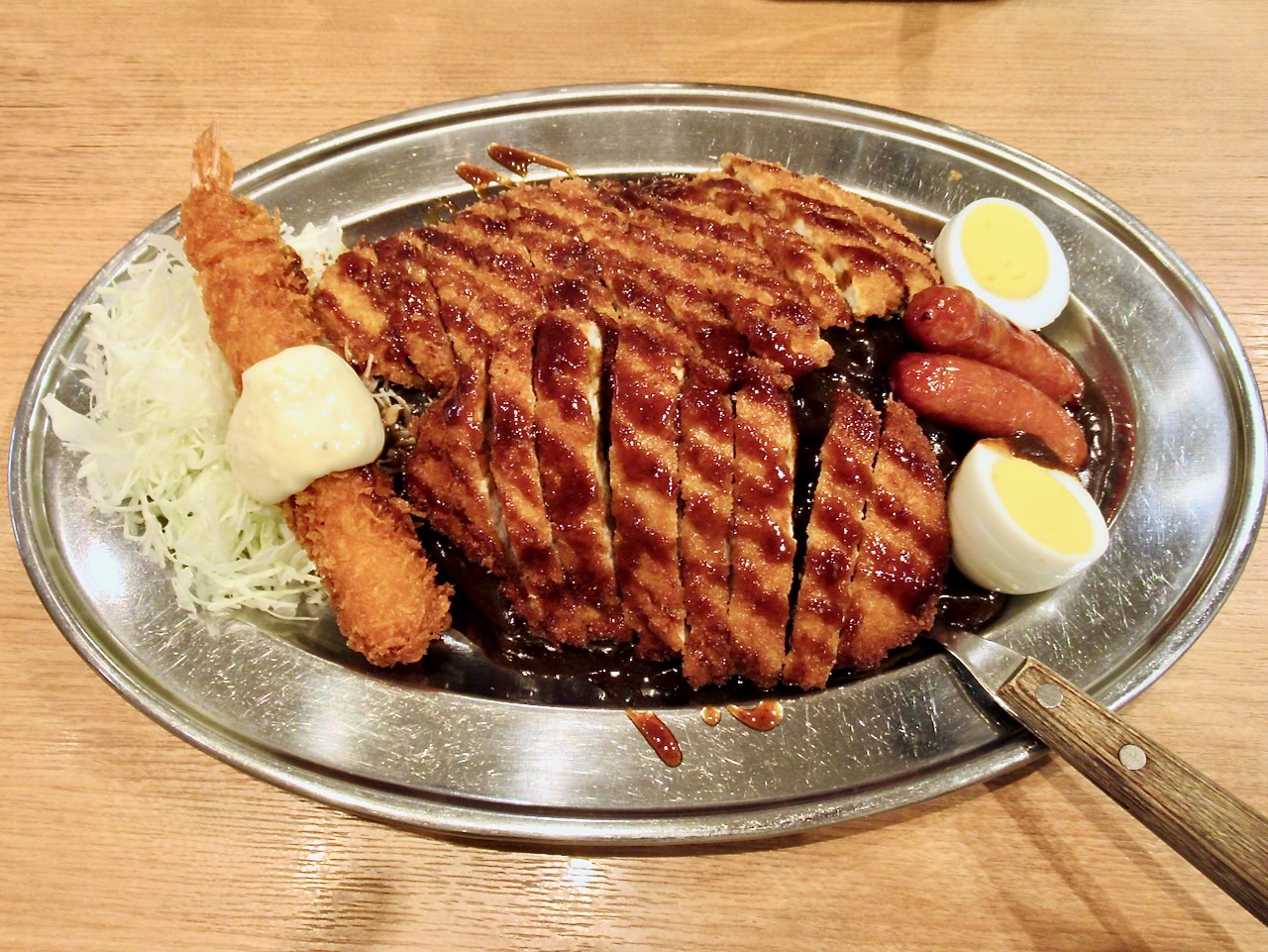 カツ2枚にエビフライとウインナー2本にゆで卵が盛られていてメッチャお得って感じですね(^_^)