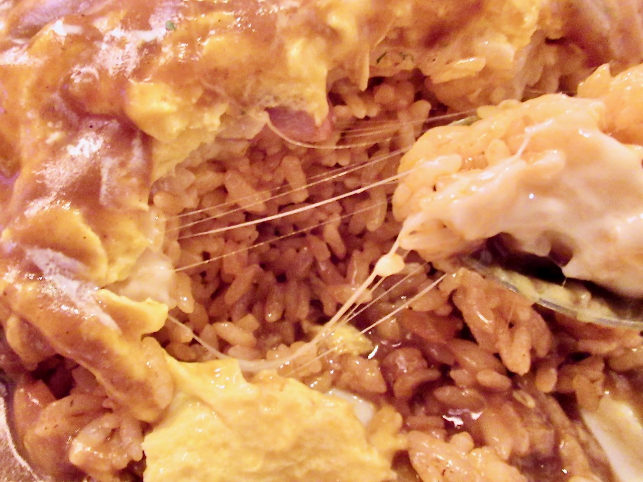 それにたっぷりのチーズ、カレーソースに生クリームとコテコテ・・・