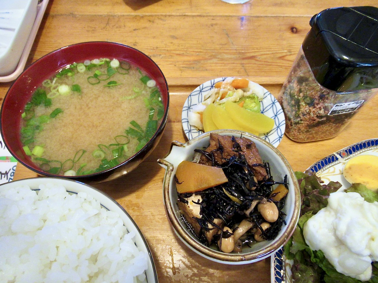 そしてお味噌汁と小鉢のひじきにお漬物・・・