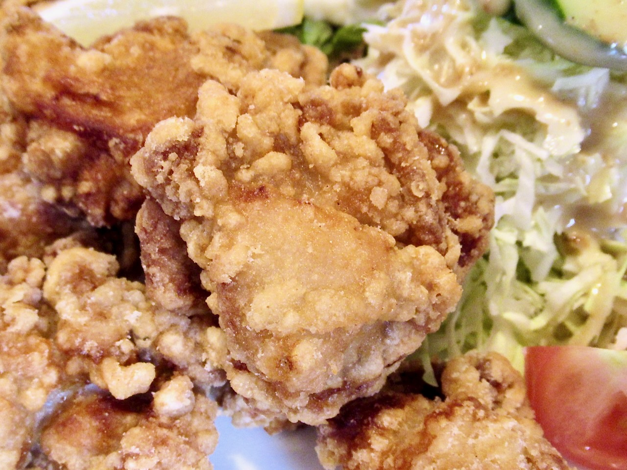 から揚げのアップになりますが、一個一個がデカくてゴロゴロ盛られてますね。すごくジューシーなお肉が最高です(^_^)