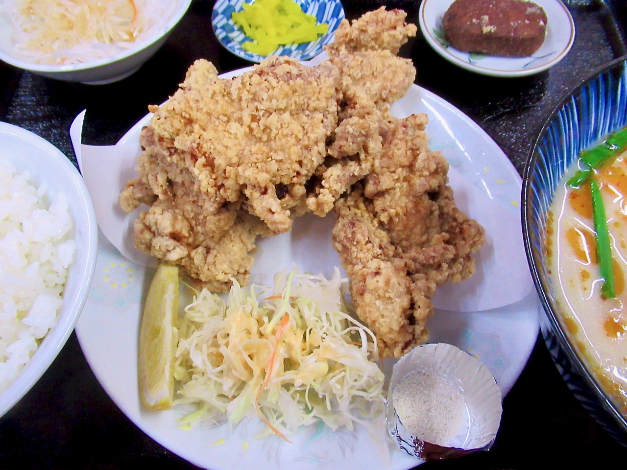 唐揚げがメッチャデカくてラーメンの丼鉢が小さく感じます。