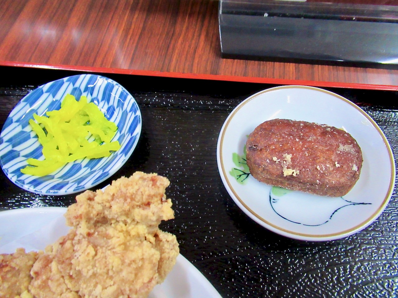 あとは小鉢の揚げ物にお漬物とサラダのお皿になります。