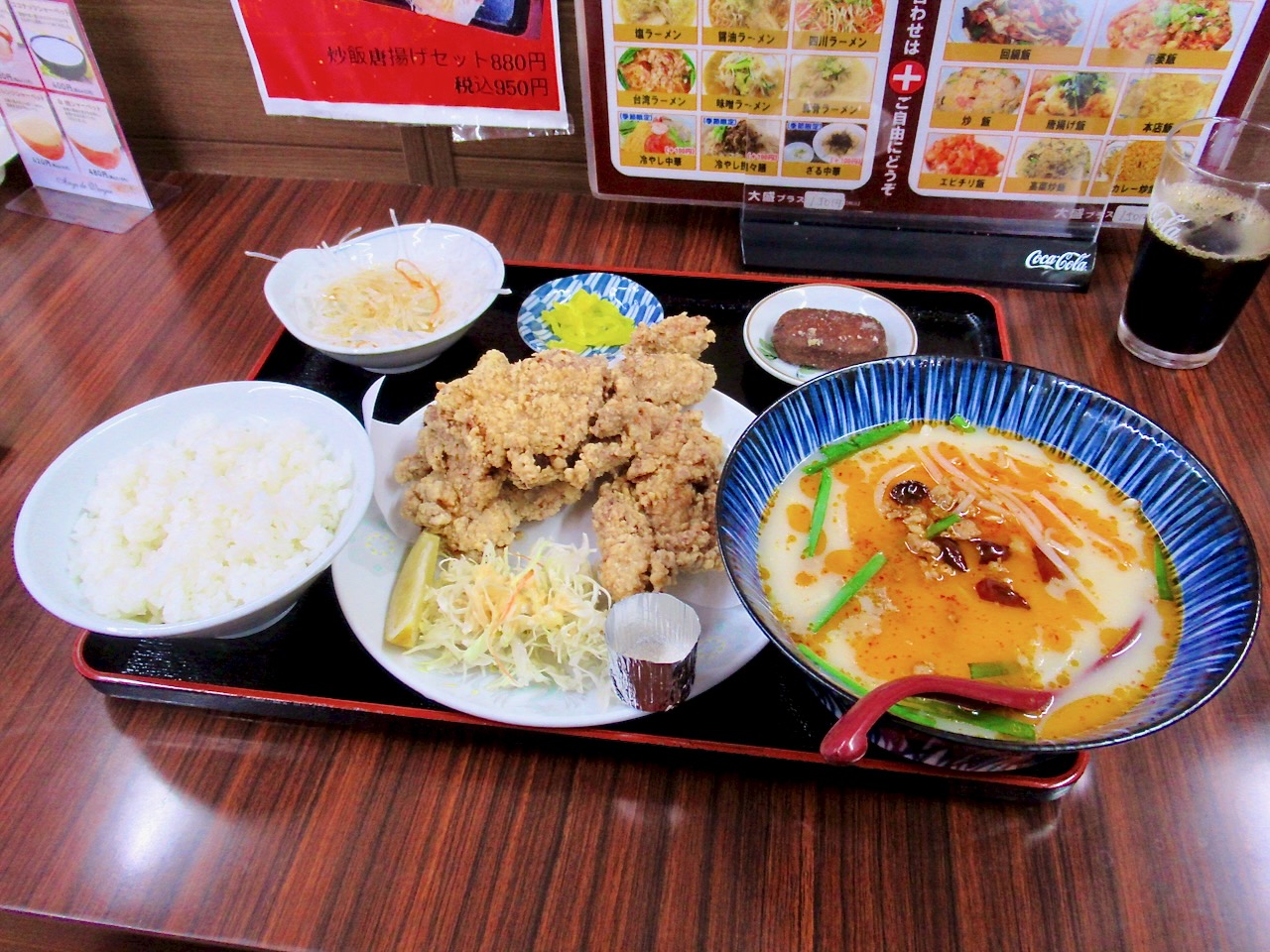 唐揚げがメッチャデカくてラーメンの丼鉢が小さく感じます。