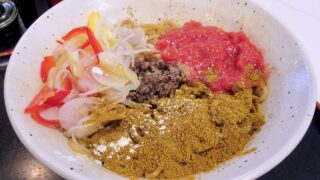 今回は但馬でも珍しい油そば専門店で、油そばとカレーが合体した新作!?をいただいてきました。これがまたうまいんですよね!!1+1=3って感じでしょうか・・・次にお邪魔するまでにいろんなアレンジ追加していて欲しいですね(^_^)